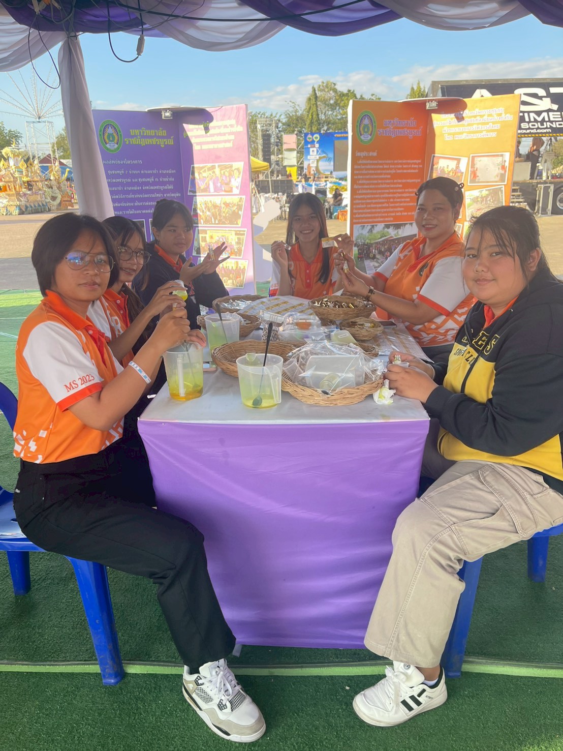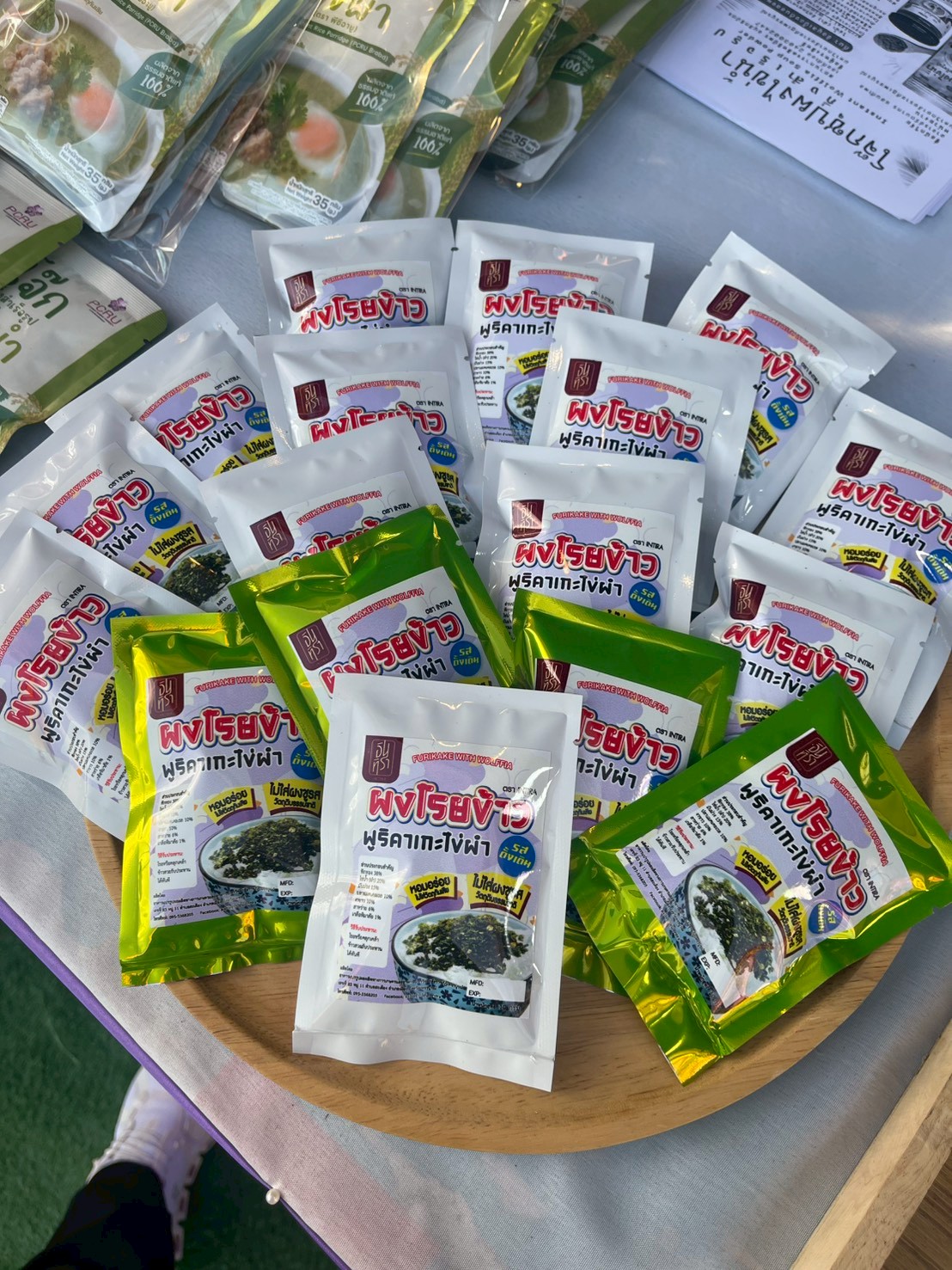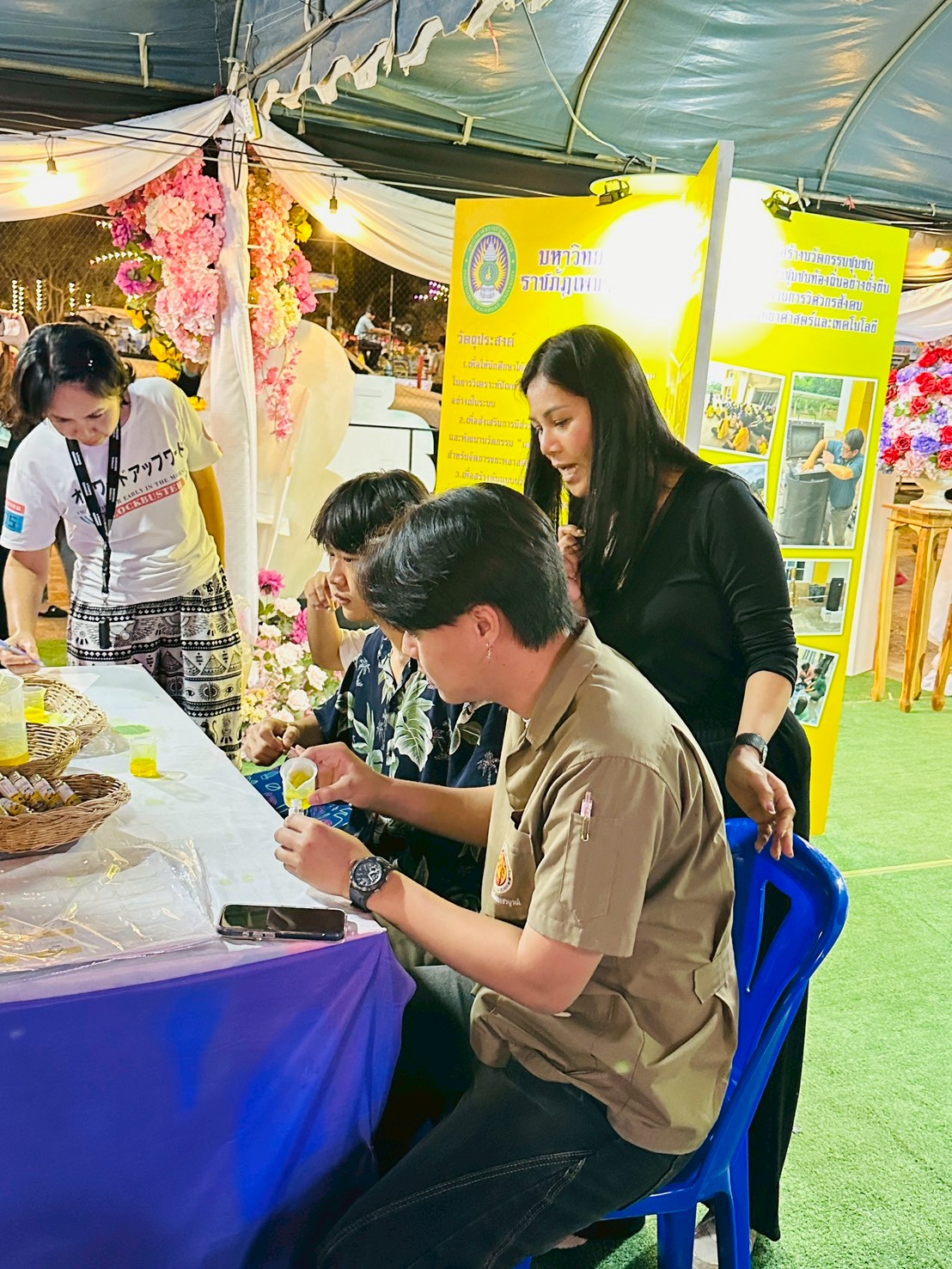 ภายในบูธนิทรรศการ เต็มไปด้วยบรรยากาศแห่งการเรียนรู้และการนำเสนอผลิตภัณฑ์ที่น่าสนใจ 🌿 ประกอบด้วย “ผลิตภัณฑ์ผงโรยข้าวจากไข่น้ำ ตราอินทิรา” ซึ่งเป็นนวัตกรรมอาหารเพื่อสุขภาพจากผู้ประกอบการหน่วยบ่มเพาะวิสาหกิจของมหาวิทยาลัย นอกจากนี้ ยังมีการจัดแสดงและจำหน่ายผลิตภัณฑ์สมุนไพรคุณภาพสูง อาทิ ผลิตภัณฑ์ยาหม่องน้ำ (น้ำมันไพล) น้ำมันกระดูกไก่ดำ ยาดม และยาหม่องจากสมุนไพร 🍃 ซึ่งได้รับความสนใจจากประชาชนและนักท่องเที่ยวที่มาเที่ยวชมงานเป็นจำนวนมาก สะท้อนให้เห็นถึงความสำเร็จในการนำองค์ความรู้จากรั้วมหาวิทยาลัยมาพัฒนาเป็นผลิตภัณฑ์ที่จับต้องได้จริง
