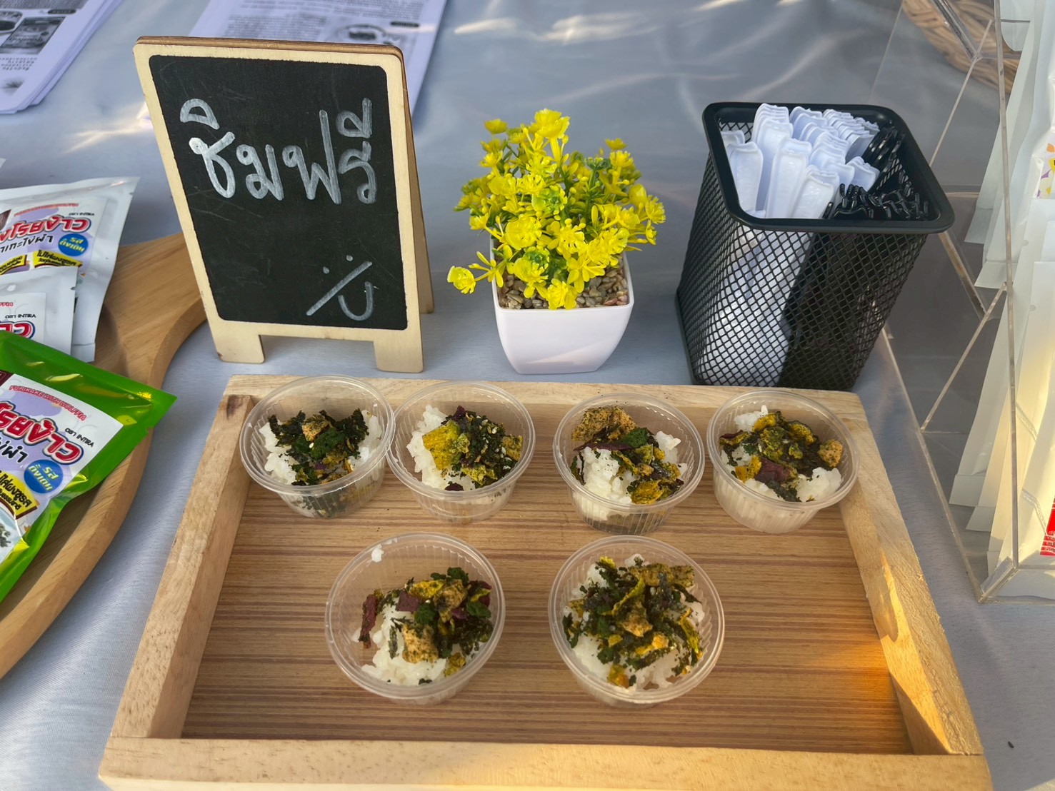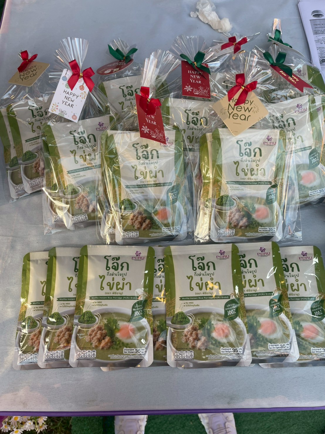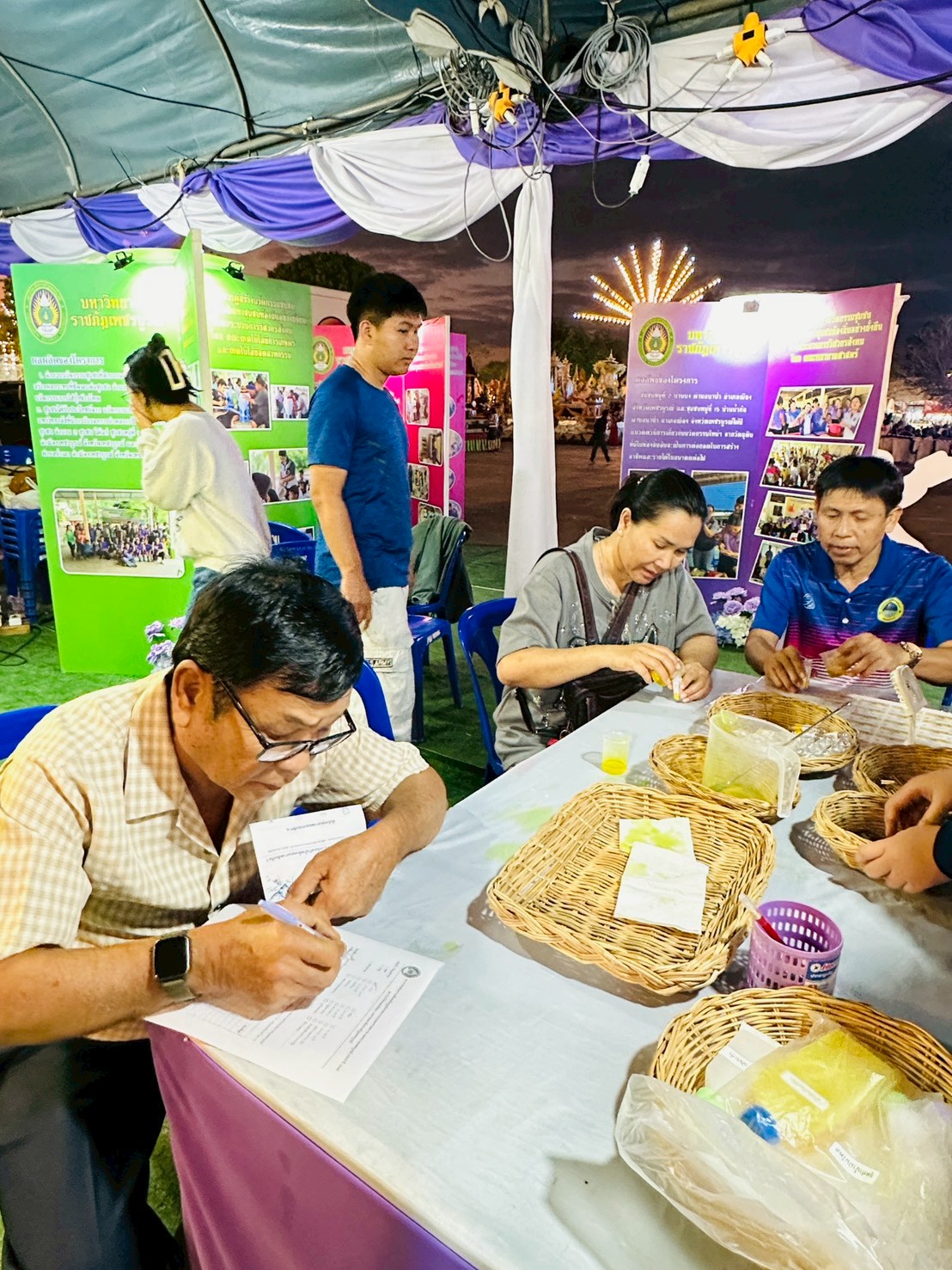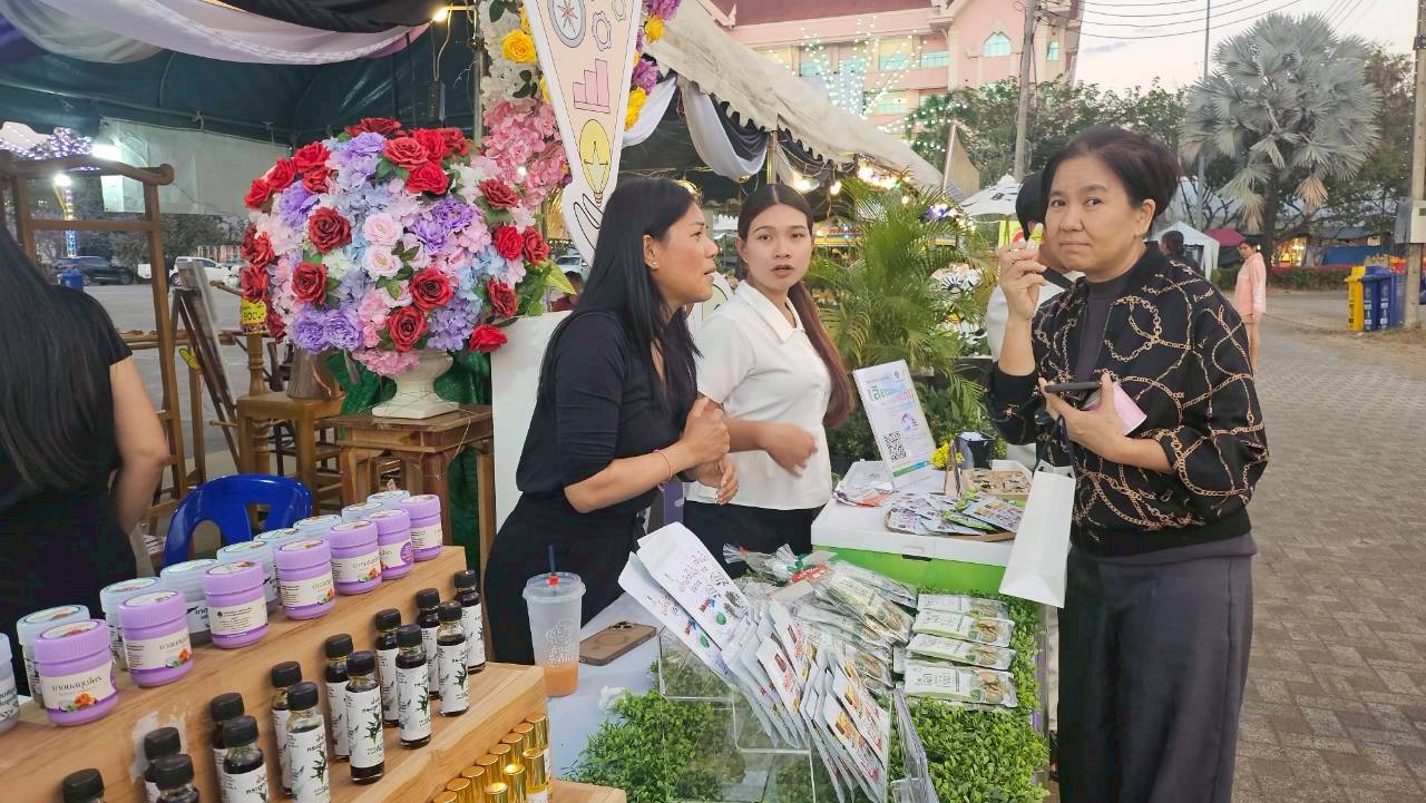 ภายในบูธนิทรรศการ เต็มไปด้วยบรรยากาศแห่งการเรียนรู้และการนำเสนอผลิตภัณฑ์ที่น่าสนใจ 🌿 ประกอบด้วย “ผลิตภัณฑ์ผงโรยข้าวจากไข่น้ำ ตราอินทิรา” ซึ่งเป็นนวัตกรรมอาหารเพื่อสุขภาพจากผู้ประกอบการหน่วยบ่มเพาะวิสาหกิจของมหาวิทยาลัย นอกจากนี้ ยังมีการจัดแสดงและจำหน่ายผลิตภัณฑ์สมุนไพรคุณภาพสูง อาทิ ผลิตภัณฑ์ยาหม่องน้ำ (น้ำมันไพล) น้ำมันกระดูกไก่ดำ ยาดม และยาหม่องจากสมุนไพร 🍃 ซึ่งได้รับความสนใจจากประชาชนและนักท่องเที่ยวที่มาเที่ยวชมงานเป็นจำนวนมาก สะท้อนให้เห็นถึงความสำเร็จในการนำองค์ความรู้จากรั้วมหาวิทยาลัยมาพัฒนาเป็นผลิตภัณฑ์ที่จับต้องได้จริง